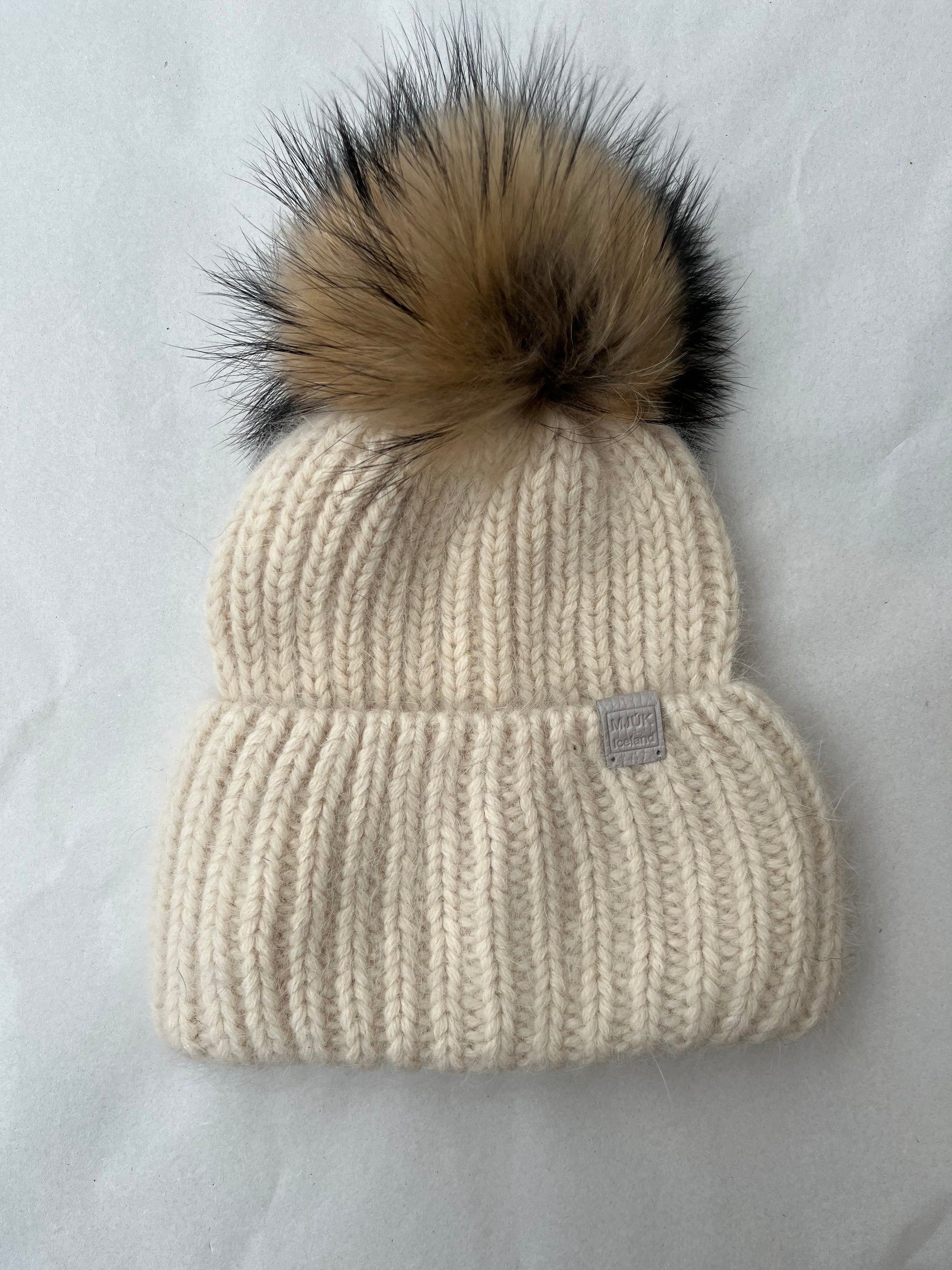 Funky, fluffy og helt unik, håndstrikket hue fra islandske MJÚK, som Helmers Magasin er eneste danske forhandler af. I blødeste angorauld i de flotteste farver.